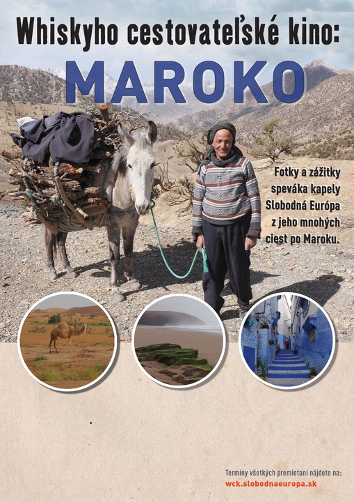 Odľahlé kúty Sahary s veľkými dunami, užasný historický Féz a labyrint uličiek najväčšej mediny na svete, autenický Taroudant, rušný Marakeš aj horský Chefchaouen a jeho nádherná modrá medina, či Tanger a jeho hippie vibe. Pobrežie Atlantiku aj Stredozemného mora, neopakovateľná atmosféra mestských aj vidieckych trhov, berberské dedinky v turistami neobjavených oblastiach aj moderné bulváry veľkých miest... Aj o tomto bude reč na ďalšom Whiskyho cestovateľskom kine.