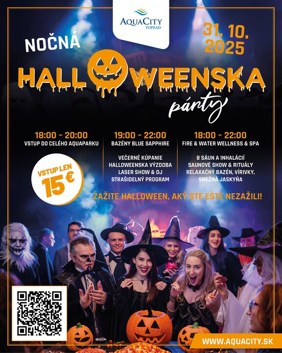 🎃 Halloweenská súťaž o sezónny PASS do AquaCity Poprad – neobmedzený vstup do bazénov a wellnessu na celé 4 mesiace a 2 vstupy na Halloweensku párty 💥