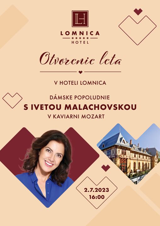 Dámske popoludnie s Ivetou Malachovskou odštartuje leto v Hoteli Lomnica plné zážitkov. Nenechajte si ujsť výnimočné stretnutia a nazrite do dámskeho sveta skrz módnu prehliadku, degustáciu vín či kozmetiku. Pod Vysokými Tatrami v noblesnej kaviarni Mozart.