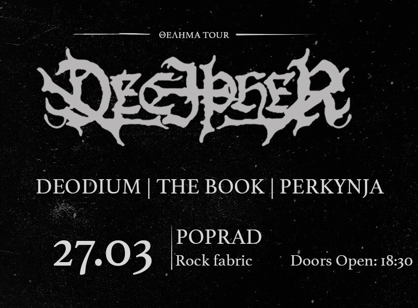 Tí čo nepoznajú Decipher, tak ich black/deathmetalový náklad vás úplne pohltí. V rámci svojho turné budú predstavovať ich najnovší album θελημα, ktorý vychádza v marci.