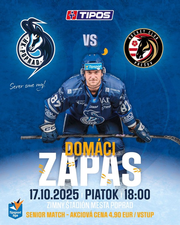 Popradskí hokejisti privítajú doma v rámci 12. kola hokejovej Tipsport ligy tím HC Prešov. Zápas sa odohrá v piatok 17. októbra o 18. hodine na ľade Zimného štadióna mesta Poprad.