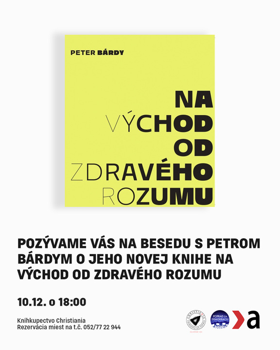 Pozývame vás na besedu s Petrom Bárdym o jeho novej knihe Na východ od zdravého rozumu.