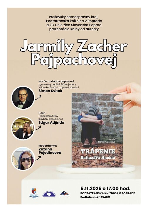 Milé dámy, srdečne Vás pozývame 5. novembra 2025 o 17.00 hod. na literárne popoludnie, ktoré prinesie silný ľudský príbeh plný emócií, bolesti aj nádeje. Predstavíme Vám knihu Jarky Zacher Pajpachovej – Trápenie Baltazára Knebla, ktorá je inšpirovaná skutočnými udalosťami. Rozpráva o chlapcovi vyrastajúcom v detskom domove – o jeho túžbe po láske, prijatí a o sile, s akou čelí životným skúškam.