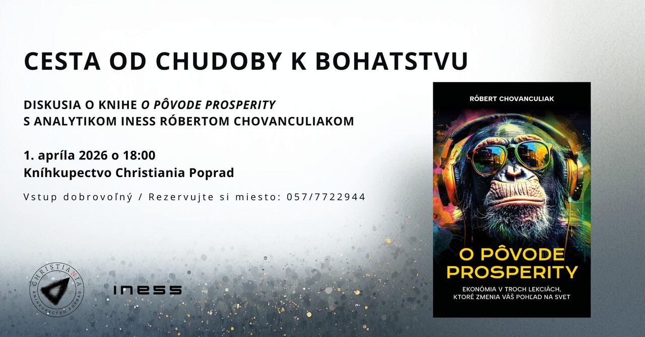 Príďte na besedu s popredným ekonómom a autorom Robertom Chovanculiakom, ktorý nám v kníhkupectve Christiania predstaví svoju novinku „O pôvode prosperity“. Zabudnite na nudné grafy a poučky. Robert vás prevedie fascinujúcim príbehom o tom, ako ľudstvo zbohatlo a čo musíme urobiť pre to, aby sme o tento úspech neprišli.