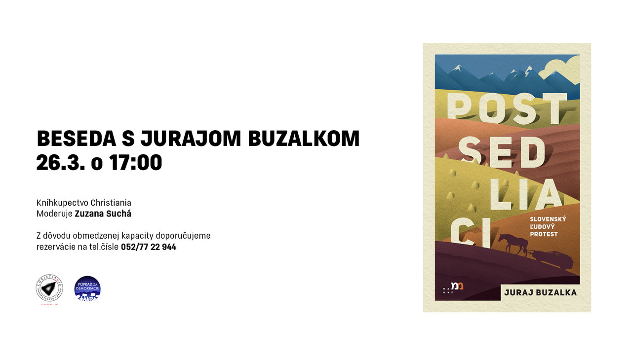 Kníhkupectvo Christiania a občianska platforma Poprad za demokraciu pozývajú na besedu o slovenskom ľude a vzorcoch správania jeho predstaviteľov a predstaviteliek v minulosti i dnes pohľadom sociálneho antropológa Juraja Buzalku, autora knihy Postsedliaci.