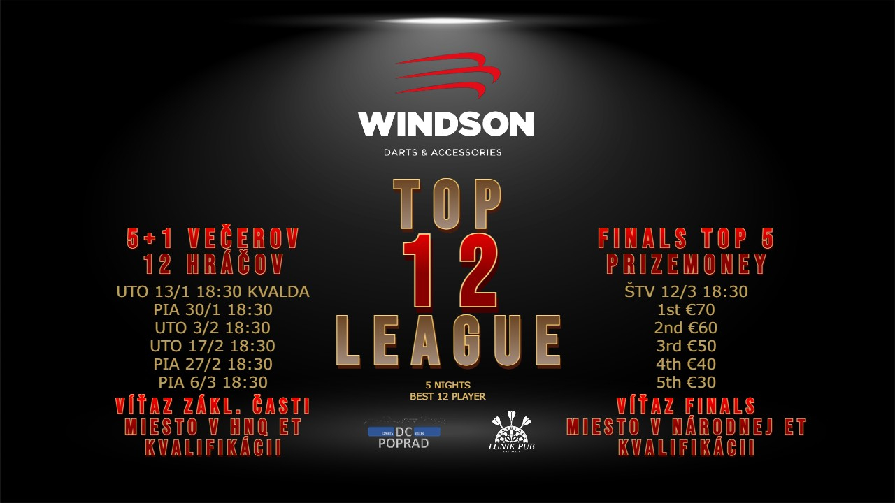 Celá Windson TOP12 League III. je organizovaná ako samostatný event v DartConnect https://tv.dartconnect.com/events/dartconnect (filter Windson TOP12)