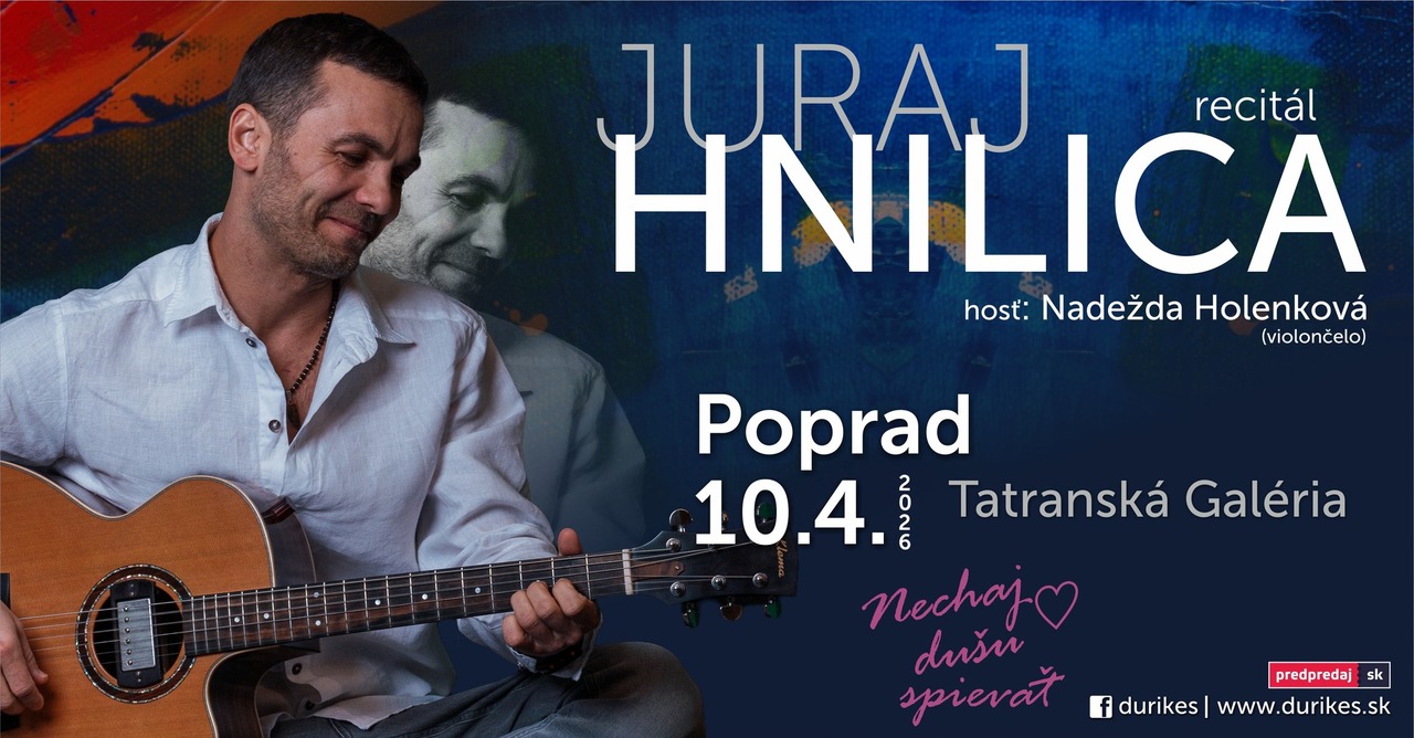 Nechajte sa vtiahnuť do príbehu melódií a poézie autorskej tvorby Juraja Hnilicu. Talentovaný pesničkár, spoločne s výnimočnou violončelistkou Nadeždou Holenkovou, prináša akustický koncert, ktorý so sebou nesie okrem silného emotívneho zážitku aj životné posolstvá ukryté v autorských textoch Jurajových piesní.