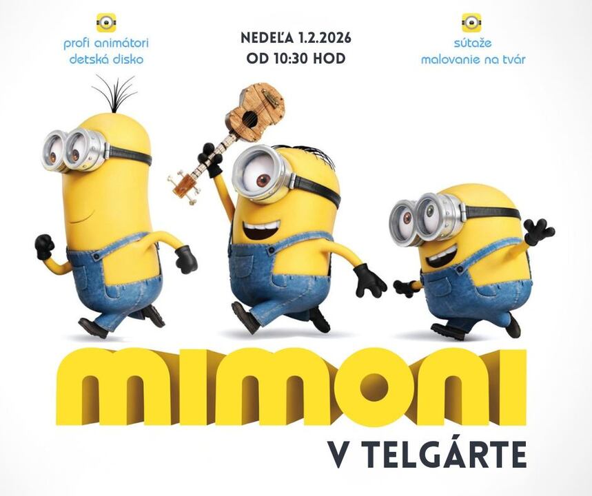 Už túto nedeľu 1. 2. 2026 od 10:30 prídu do Telgártu opäť Mimoňi a my veľmi radi pokračujeme v tradícii detských programov, ktoré u vás majú veľký úspech.