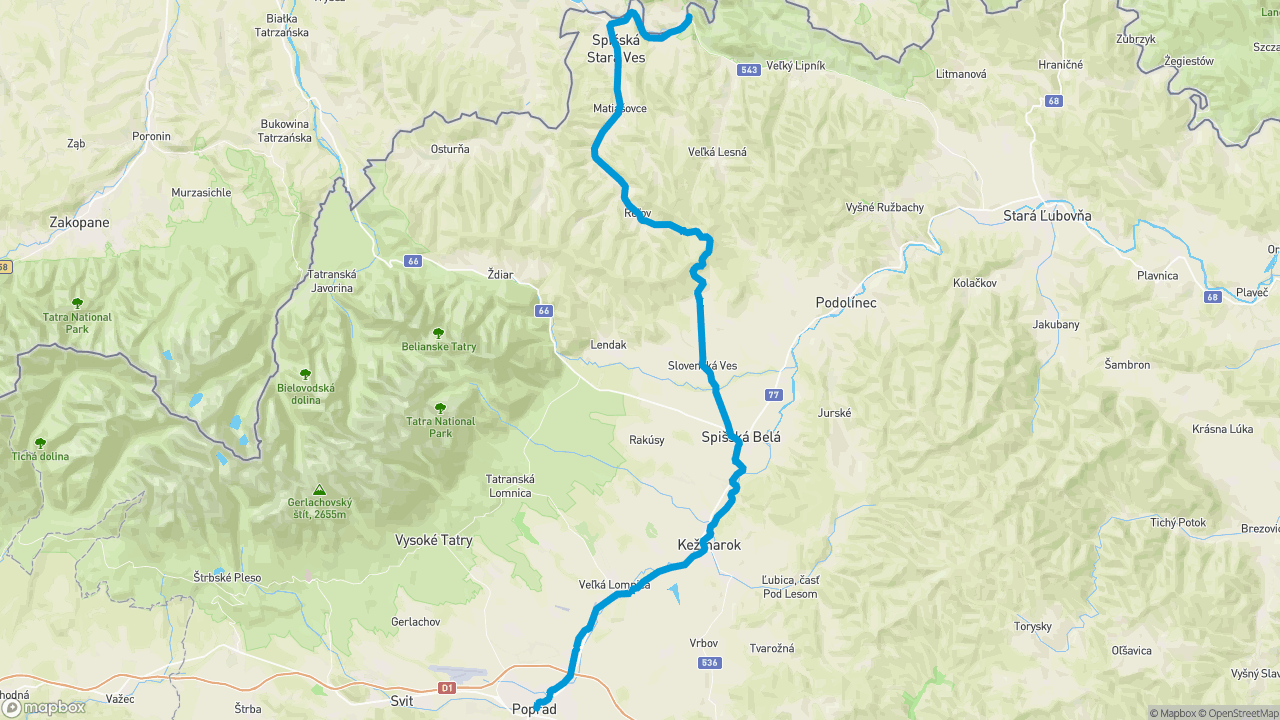 Cycling around Poprad, in the beautiful countryside below the High Tatras, the route leads through Spišská Magura to the Pieniny National Park. The route starts at Námestie sv. Egídia square in Poprad and leads through Kežmarok and Slovenská Ves to Červený Kláštor.
